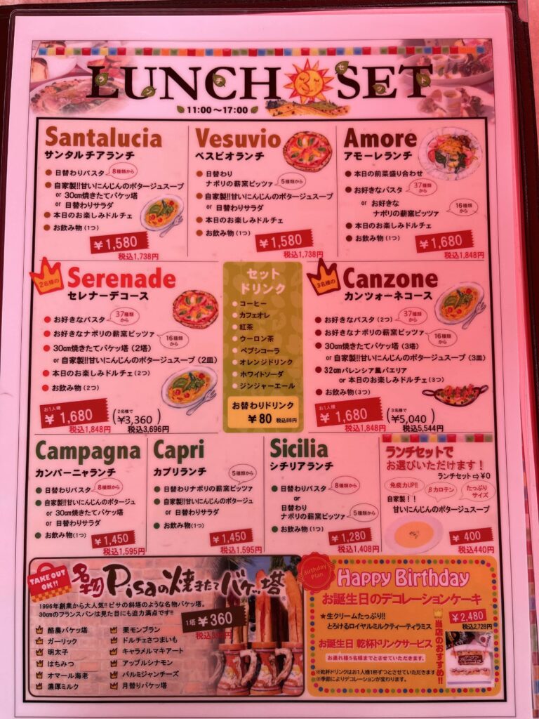 誕生日などの特別な日には、ケーキの用意やバースデーソングのサービスもあり、家族での食事にぴったりのレストランです。