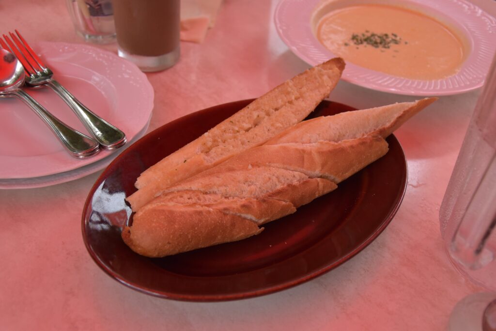 「Pisaの斜塔」をイメージしたオリジナル商品の「バケッ塔」は、長さ30cmの焼き立てフランスパンに、12種類のオリジナルバターをたっぷり挟んだ一品です。外はカリッと、中はふんわりとした食感で、熱々のバターが溶け出す瞬間がたまりません。ガーリックバターや博多明太子バター、はちみつバター、モンブランバターなど、季節限定のフレーバーも楽しめます。