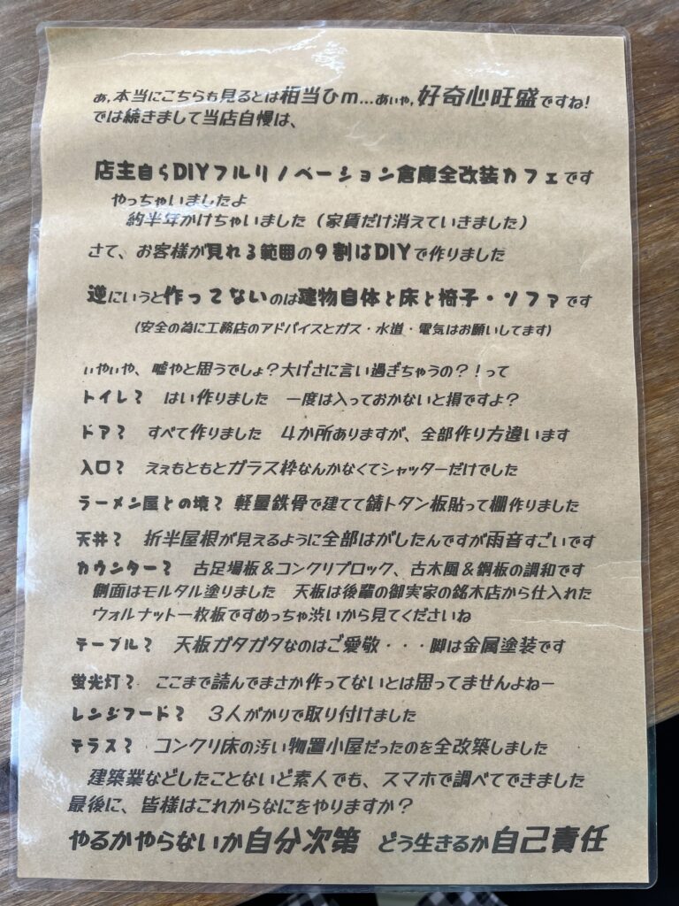 こちらのお店の目に見える部分の大半をオーナーご本人がDIYで作られたそうです。