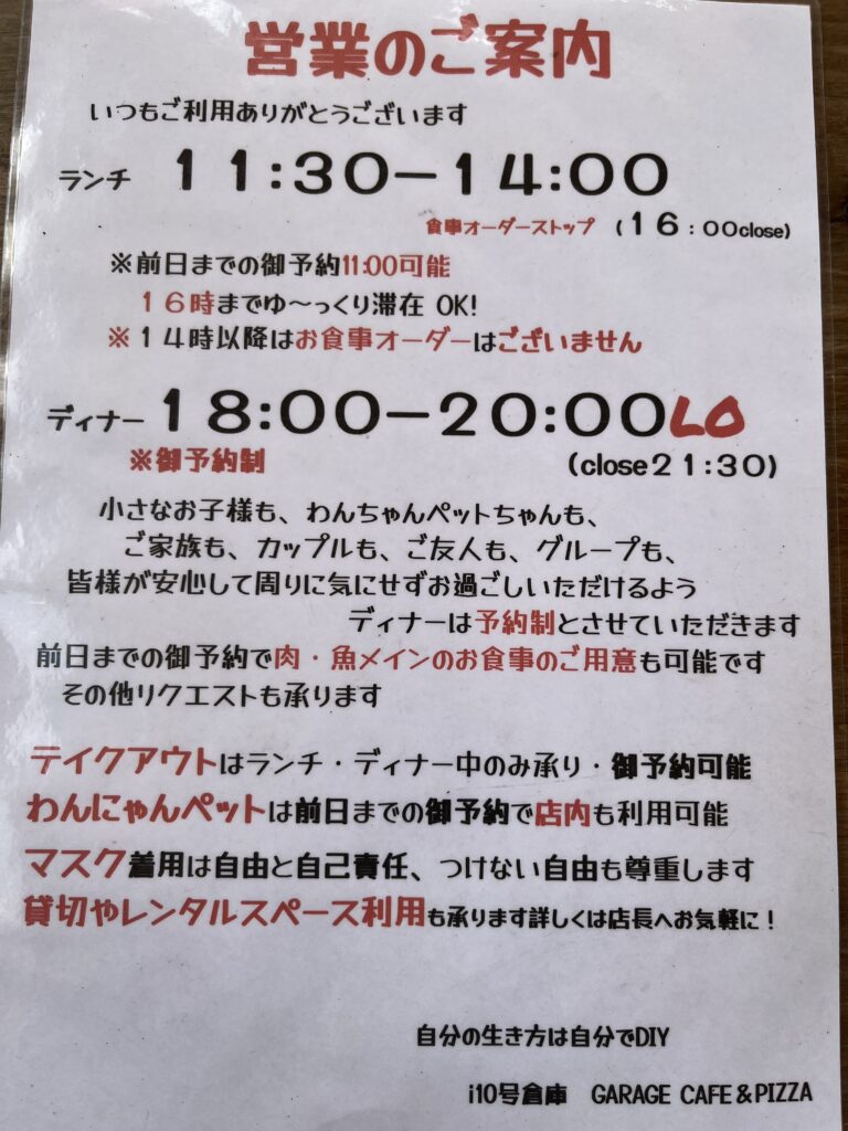 | ワンちゃん同伴 | テラス席可(前日までの予約で店内同伴可) わんこメニューなし |