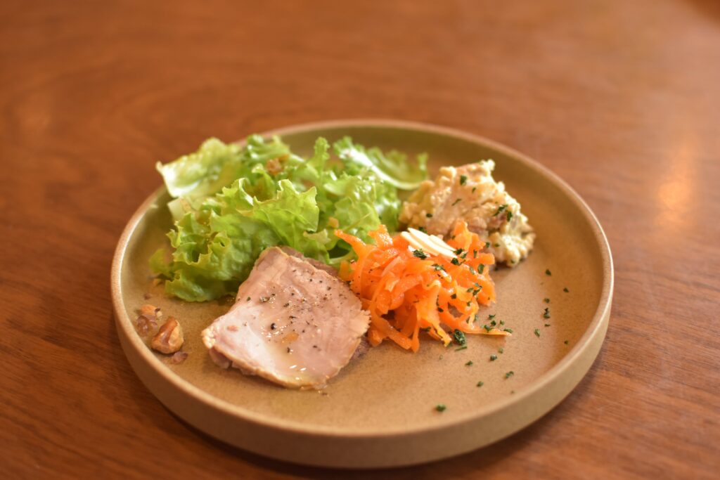 ランチタイムには、前菜の盛り合わせや瀬戸内の魚介を使ったメイン料理など、本格的なビストロメニューが登場します。