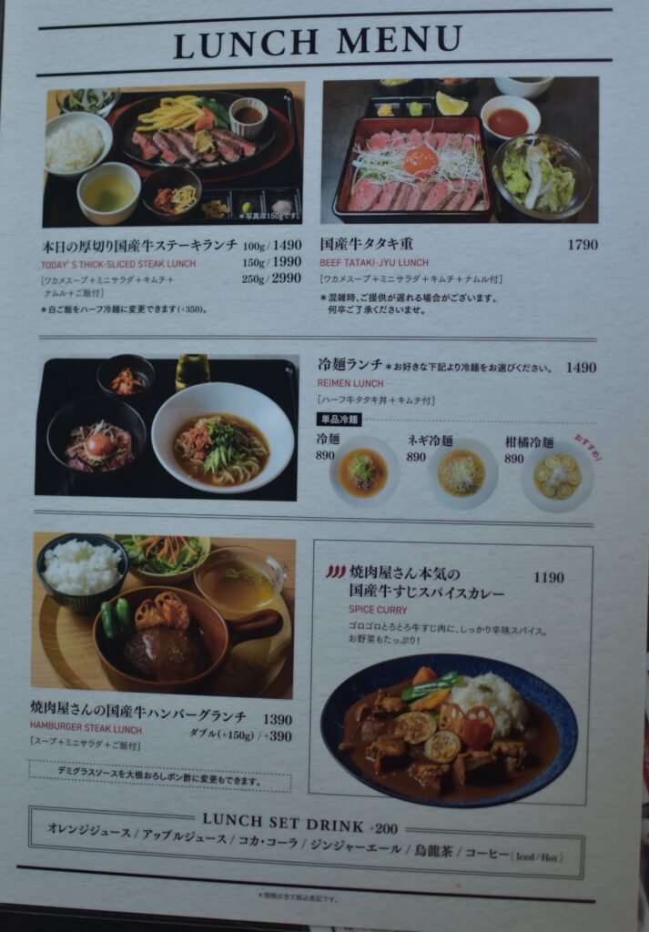 今回はランチでお肉しか食べませんでしたが、ドリンクのメニューも豊富なので気軽にカフェ利用するのも良さそうですね。