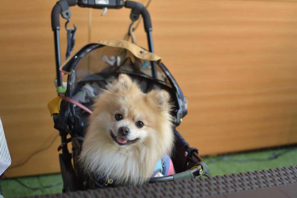 ショーンはペットカートを使用しましたスペースに余裕があるのでペットカートでそのまま入店できます。