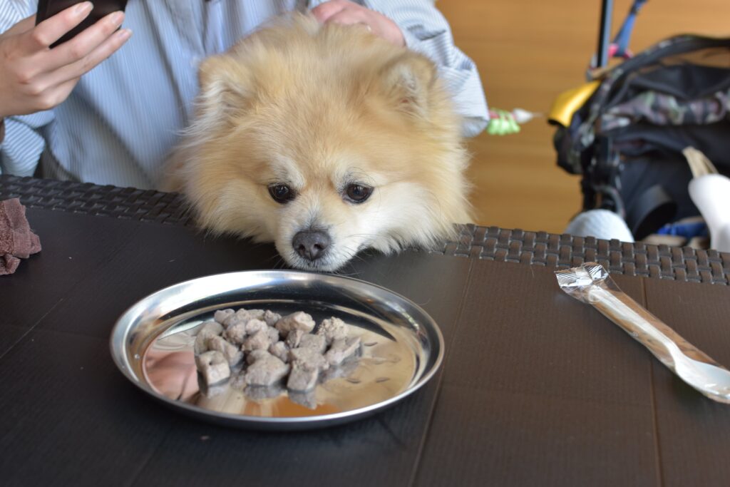 溢れ出る肉汁がとってもジューシーです。わんこメニューはこちら
