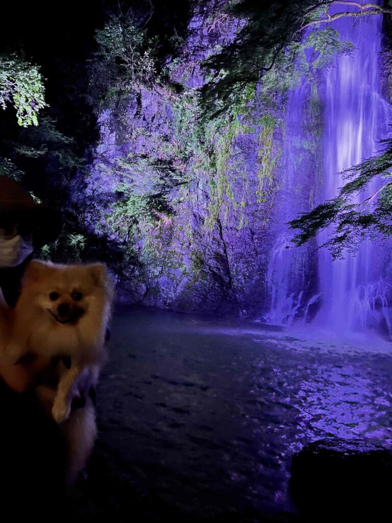 色味が徐々に変わるライトを使用されていて、色んな雰囲気の幻想的な箕面大滝を見ることが出来ました。