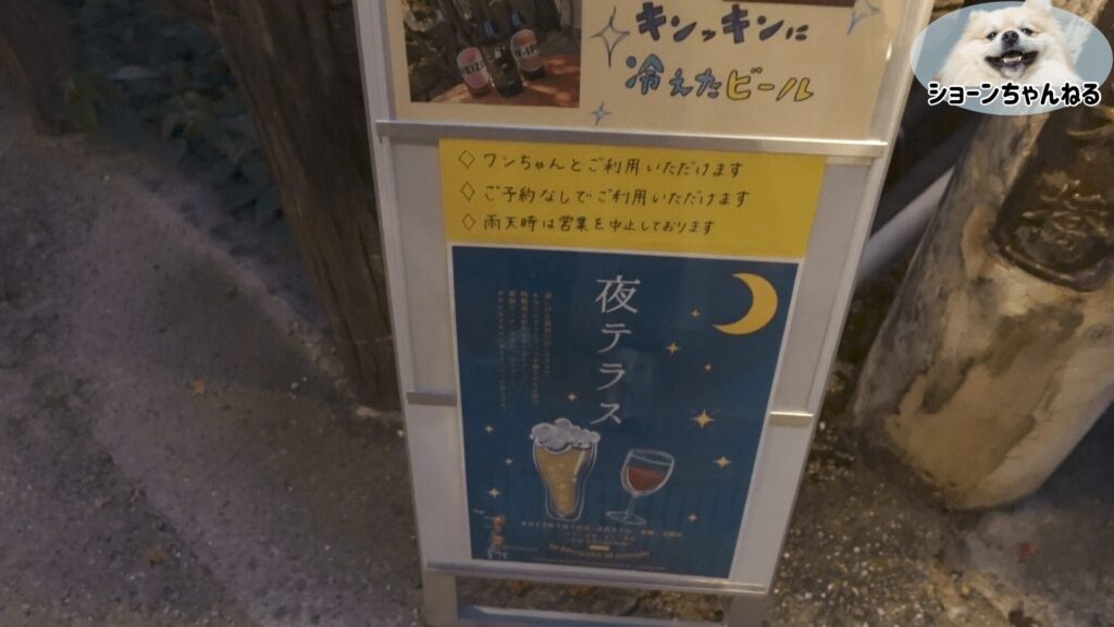 滝へ向かう遊歩道の序盤にある音羽山荘のそばに犬と一緒に入れる飲食店もありました。
