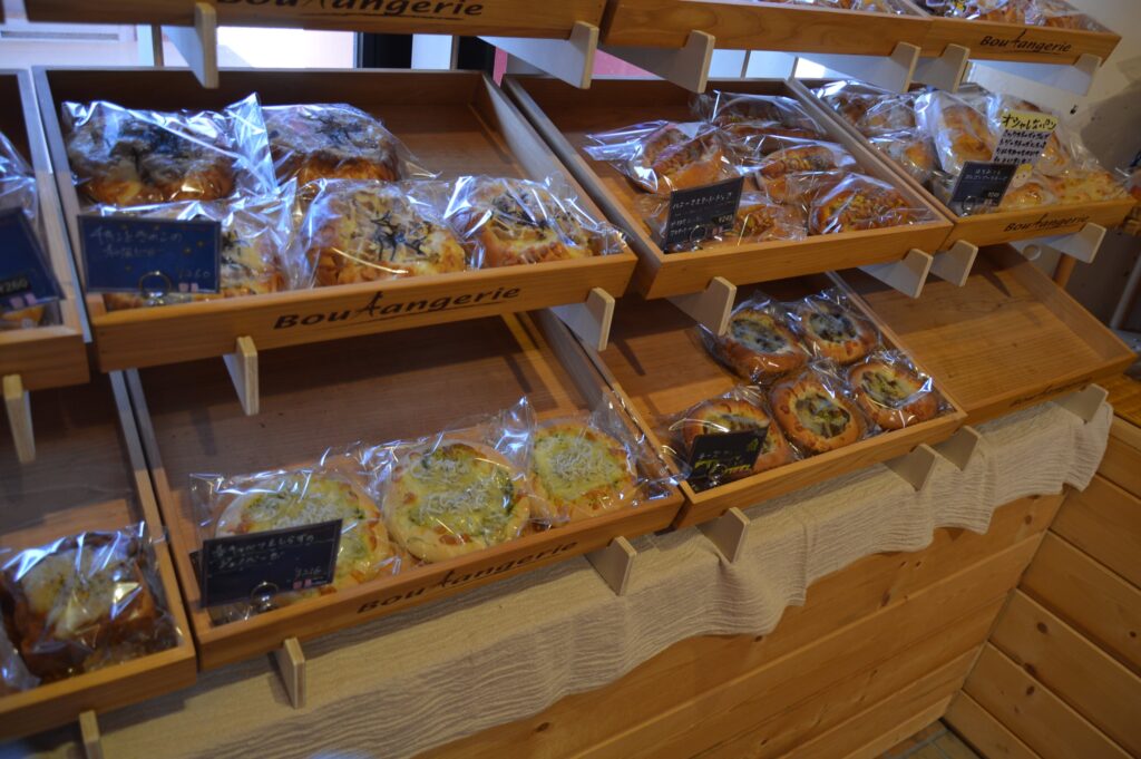 種類豊富で美味しそうな焼き立てパンがたくさん並んでいました。