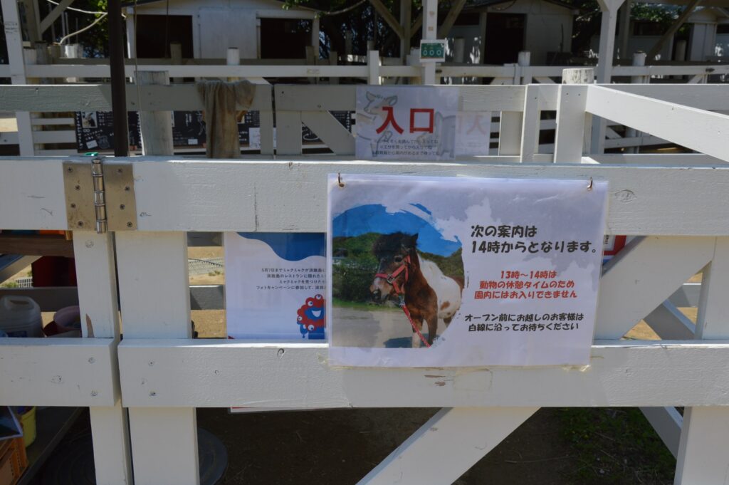 ※13時からは14時は動物の休憩タイムのため園内におはいりすることできません