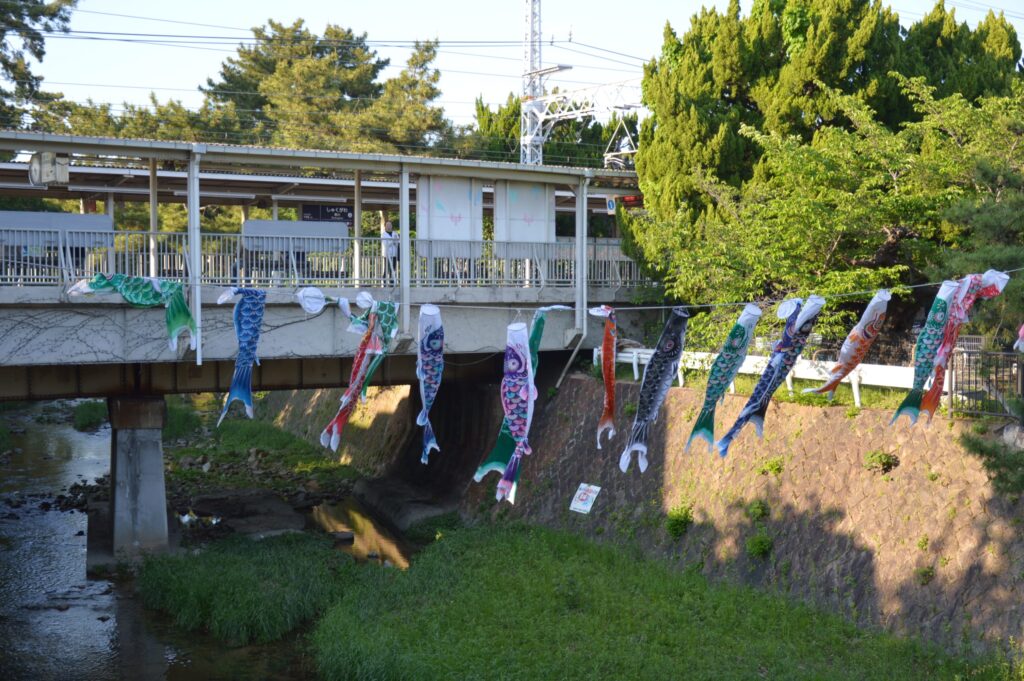 近隣の幼稚園や小学校では、毎年この時期に合わせてオリジナルの鯉のぼりを作る活動が行われており、それらは駅構内に展示されることもしばしばです。
